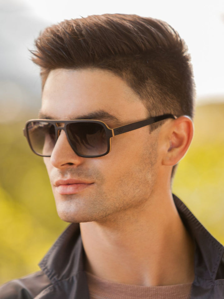 Сонцезахисні дерев'яні окуляри Liverpool виготовлені вручну з чорного горіху та багатошарового клену, укріплена карбоном.